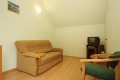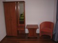 В номере находится тумба с зеркалом, шкаф. В комнате находится диван, который раскладывается в двуспальную кровать, тумбочка, журнальный стол со стулом.
