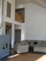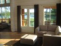 На первом этаже каждого коттеджа расположена просторная гостиная с большим дровяным камином и отдельным выходом на открытую террасу с видом на озеро, уютная кухня с обеденной зоной, спальня, также с выходом на террасу, санузел и помещение с душем и сауной; на втором этаже размещены три отдельные спальни и два санузла, один из которых оборудован душем.