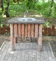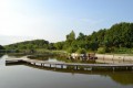 По левому берегу от дамбы расположен настоящий хуторок: домики и беседки из сруба уютно расположились в тенистой лесопосадке. В каждом месте отдыха есть деревянные столы и стулья, мангал, дрова, вода. В домиках также есть холодильник, чайник и спальные места.