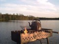 Гриль-беседка во дворе, лодка, пирс, гриль, садовая мебель